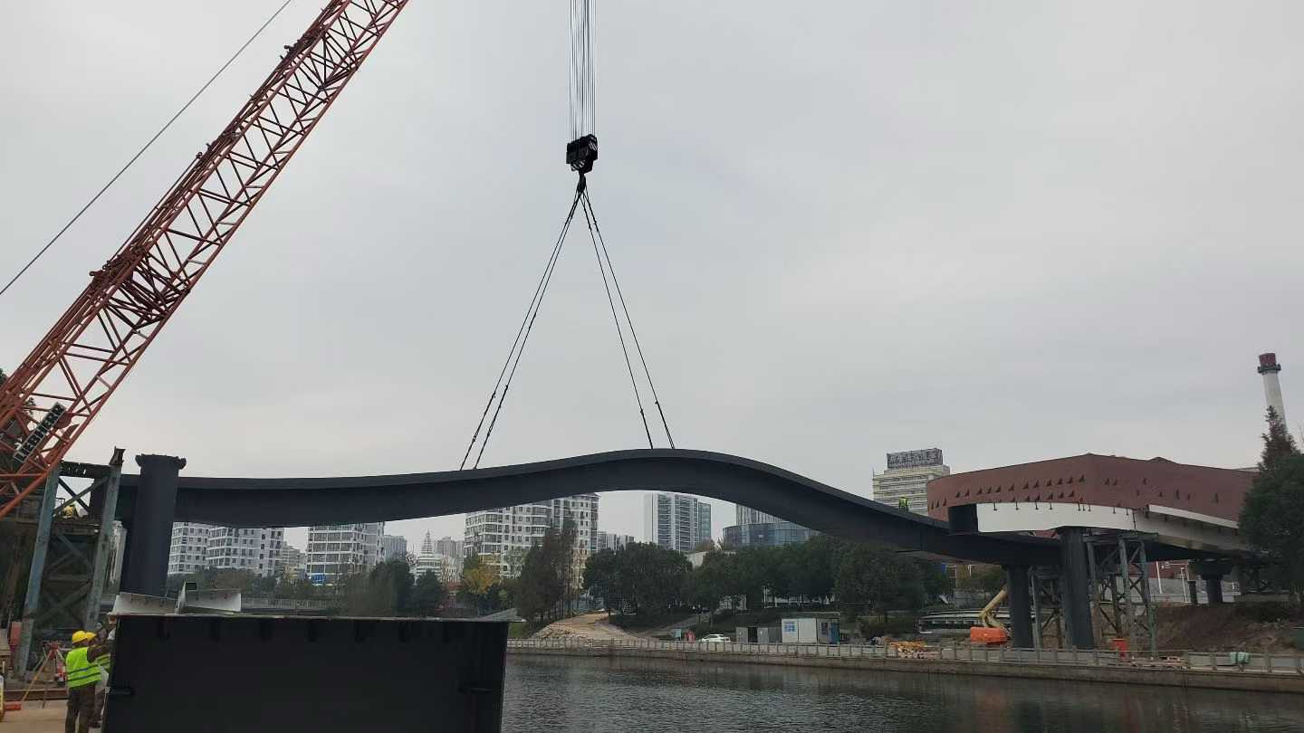 項目創新性采用“一鉤吊”施工工藝,成功完成大跨度鋼構件整體吊裝,全過程吊裝平穩、定位精準。