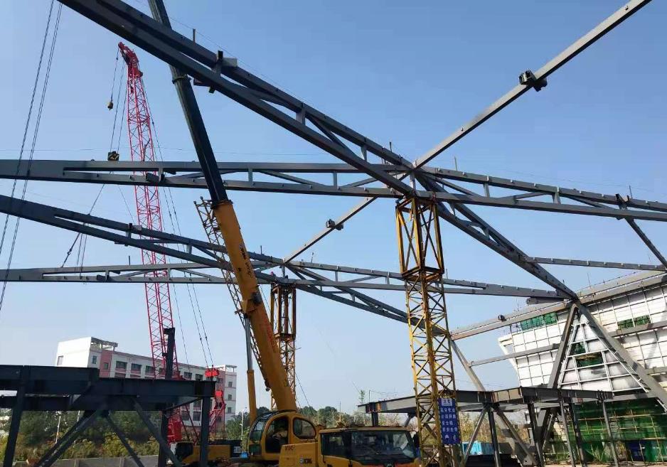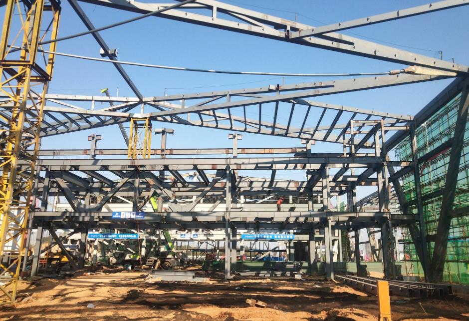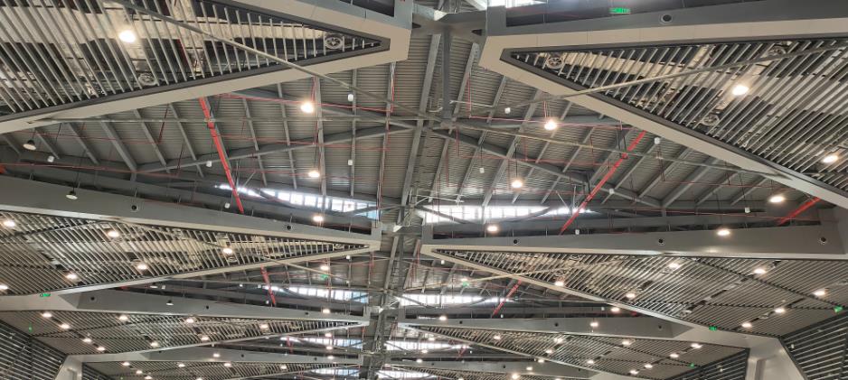 本工程由5個(gè)展廳及南北縱橫的共享大廳組成,總建筑面積約42000平方米,上部結(jié)構(gòu)均為鋼框架+屈曲約束支撐+張弦桁架,屋面采用鋁鎂錳板金屬屋面。