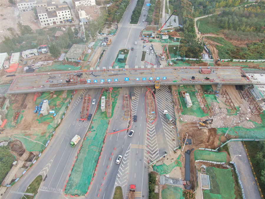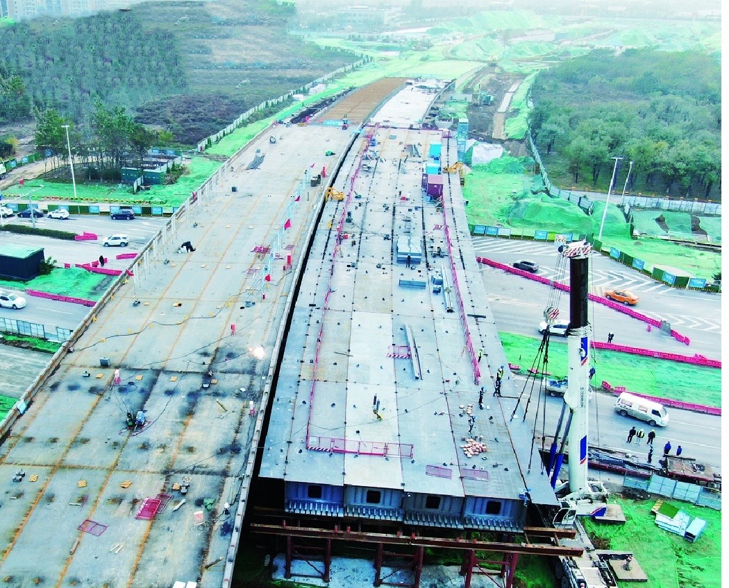 我方承建的二標段西起灞河東路以東,東至香槐六路,主線總長1331m,起訖樁號為K1+600~K2+931,其中隧道道段總長223m,U型槽217m,橋梁段總長為672m,總用鋼量5100噸。
