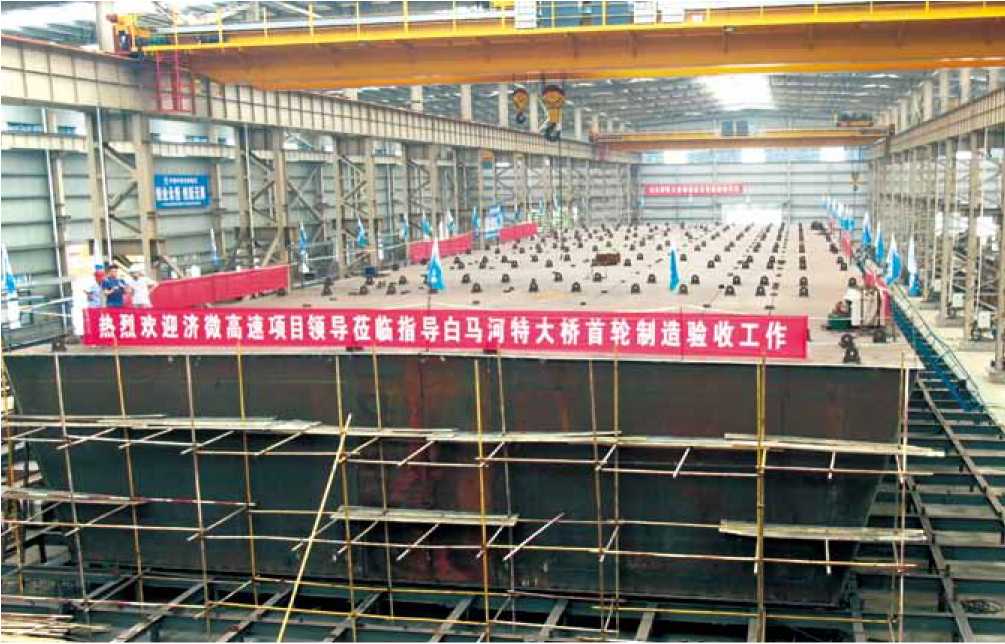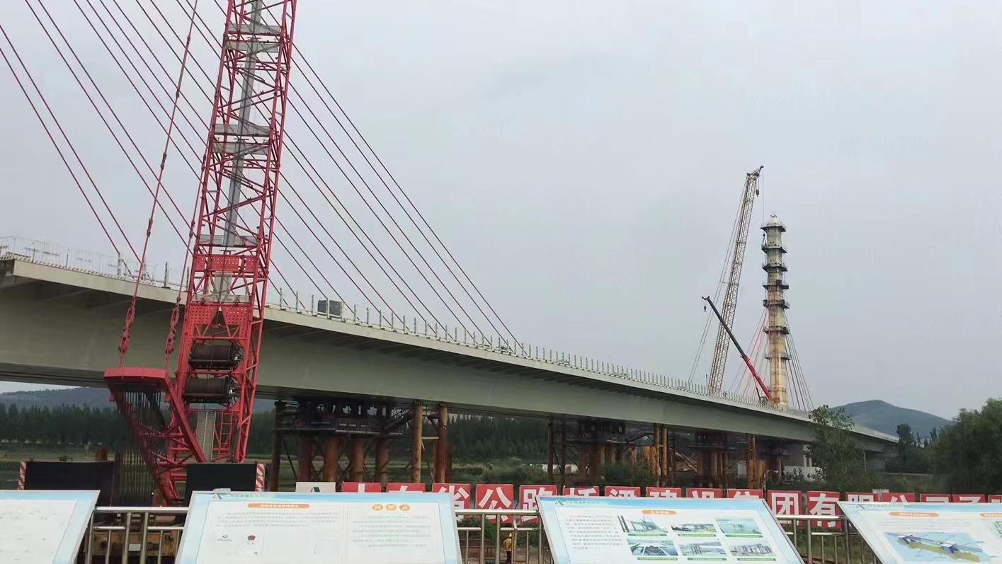 白馬河特大橋是濟南至微山公路、濟寧新機場至棗荷高速段項目的控制性工程之一。該橋主跨240米,是山東省內(nèi)跨徑最大的中央雙索面 矮塔斜拉橋。鋼橋總用鋼量14000噸。