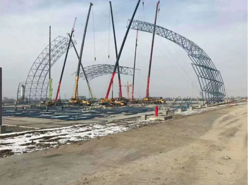 近日,由我司承接施工的新疆心連心能源化工有限公司原煤洗選分級利用項目煤均化庫主體網架結構順利安裝完成,這標志著該工程項目已接近尾聲。