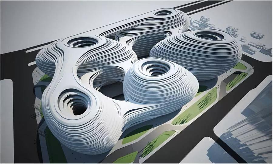 在建筑領域中,黎曼幾何在扎哈的建筑作品運用的比較多。擅長用曲線做設計的扎哈,她的作品總是會帶給人極強的視覺沖擊力,人們往往驚嘆于建筑靈動而和諧的美感。其實,扎哈是將由黎曼幾何得來的“葉狀結構”在建筑上做了各種創作。