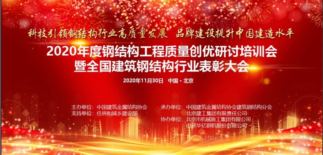 為全面提升鋼結構的工程質量安全水平,總結推廣創建精品鋼結構工程的先進經驗,促進鋼結構行業高質量發展,2020年度鋼結構工程質量創優研討培訓會暨全國建筑鋼結構行業表彰大會于2020 年11月29日-30日(星期日-星期一)在北京順利召開。