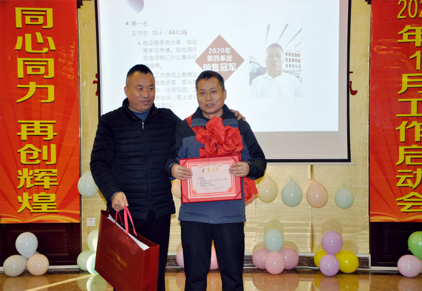 最后董事長張猛做了重要講話,總結成績分析不足。提出新三年的戰略規劃,把2021年定為管理基礎年,2022年定為發展年,2023年定為沖刺年。董事長指出,公司發展沒有天花板,但我們要腳踏實地定一個稍微努努力能夠的著目標,一步一個腳印前進,并提出新的一年期望寄語。