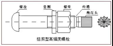扭剪法:一種特制螺栓,用特殊扳手,擰斷為止——預(yù)拉力建立完成。比較準(zhǔn)確,且施工簡便