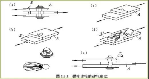 e)螺桿因太長或螺孔大于螺桿直徑而產(chǎn)生彎、剪破壞(板疊厚度≤5d);