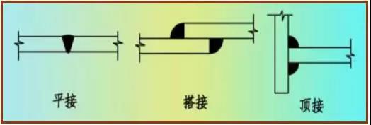 按兩焊件的相對位置分:平接、搭接、T(頂)接和角接。