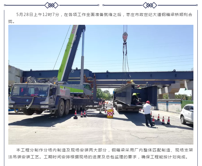 熱烈祝賀棗莊市政世紀(jì)大道鋼箱梁橋順利合攏