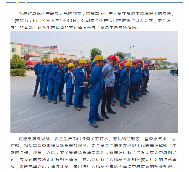 安全生產 預防為先 | 公司開展高溫中暑應急演練