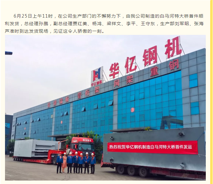 熱烈祝賀白馬河特大橋首件發(fā)運(yùn)