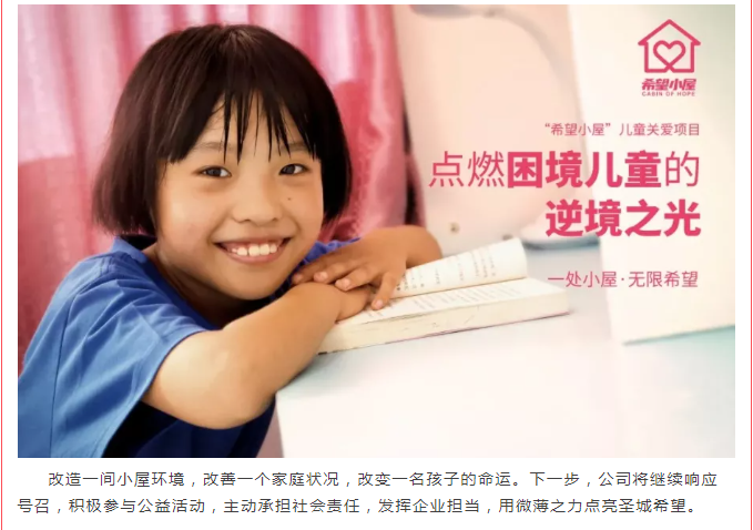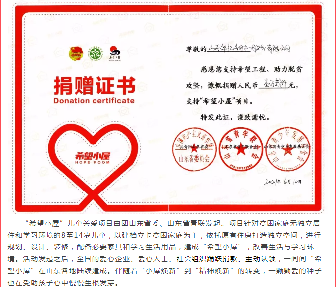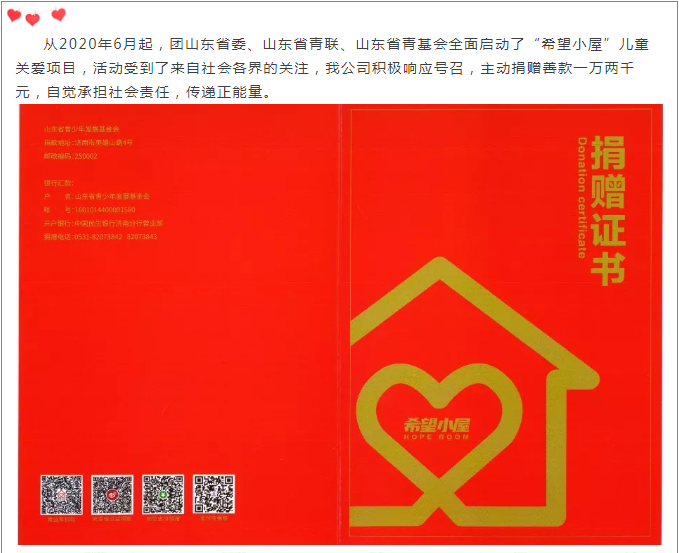 公司向“希望小屋”兒童關(guān)愛項目捐贈善款