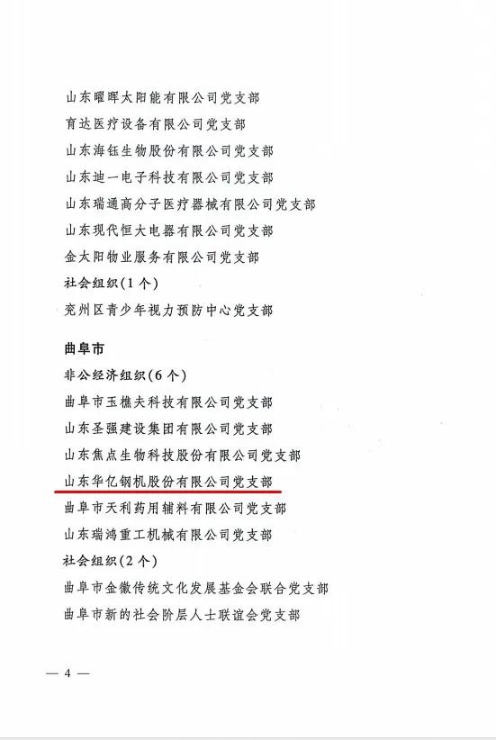 近日,我公司黨支部被濟寧市委組織部授予“雙強六好”“兩新”組織示范點,這是在繼2020年7月公司黨支部書記楊鴻同志榮獲曲阜市“紅帆能手”后,華億鋼機在黨支部建設(shè)方面又獲得的一項濟寧市級榮譽。