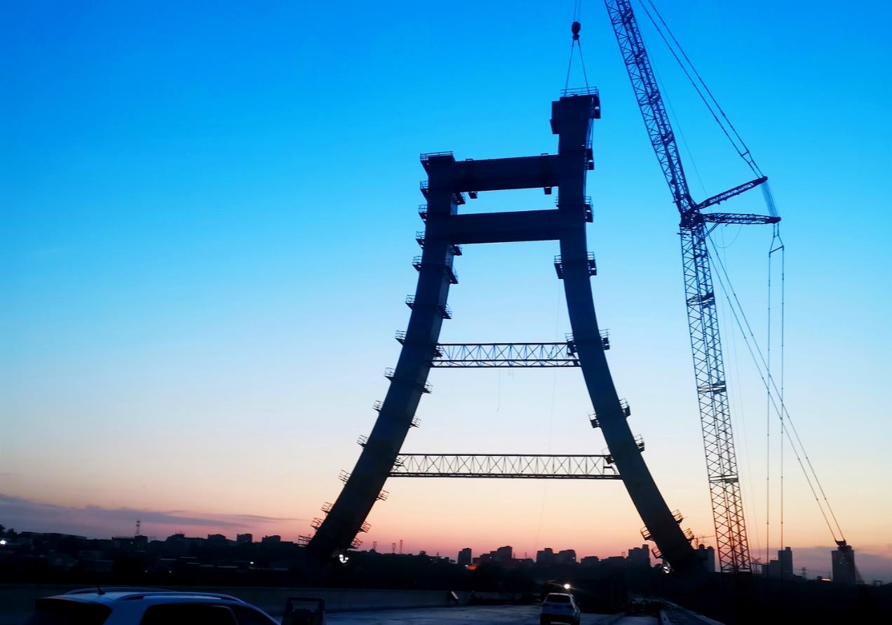 完美丨鞏義市石河道大橋橋塔順利合攏