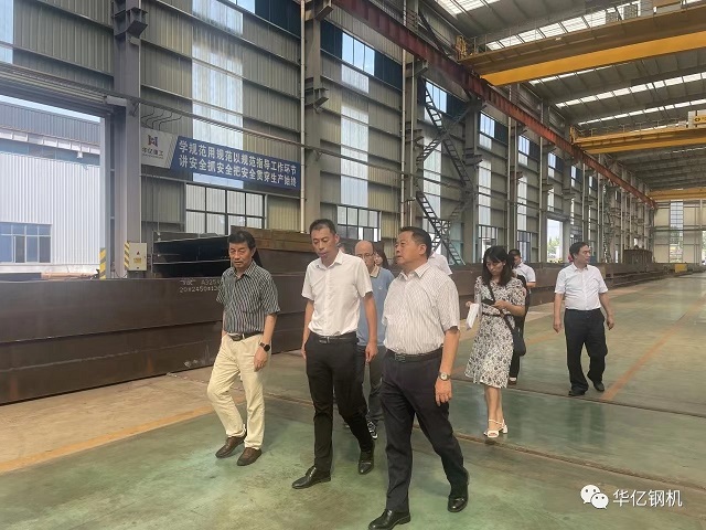 林江海一行人參觀了生產車間,對公司高端裝備和裝配式建筑發展給予了充分肯定和贊賞,并針對公司的問題和需求進行了交流答疑,提供了針對性、可行性、前瞻性的意見建議。林江海指出公司要著力抓好科技創新和項目建設,全面貫徹新發展理念,把統籌發展和安全落實到各領域、各環節。