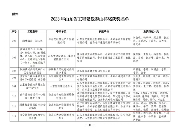 近日,全省住房城鄉(xiāng)建設工作會議召開,會上宣讀了2023年度山東省工程建設泰山杯獎獲獎名單,公司參建的濟寧新體校建設項目榮獲2023年度山東省工程建設泰山杯獎,這是繼海達會展中心項目榮獲2021年度“山東省工程建設泰山杯”獎后,再次獲此殊榮。