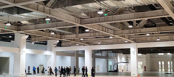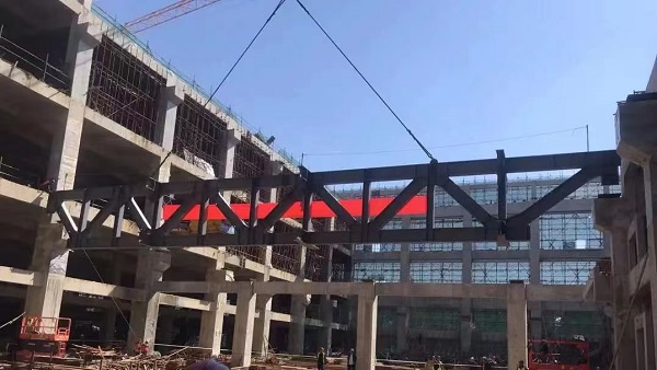 新體校建設項目位于濟寧市太白湖新區(qū)許莊街道,荷花路東側,北湖西路南側,濟寧市體育中心院內,總建筑面積60426.4㎡。公司承建的4#樓綜合訓練館鋼結構工程,總建筑面積為:29225.93㎡,其中地上建筑面積為 22524.28㎡,地下建筑面積為 6701.65㎡;采用鋼桁架結構體系,結構長度90米,寬度32.4m-44.7m,投影面積3469.5㎡。鋼桁架總重量2154.63噸。