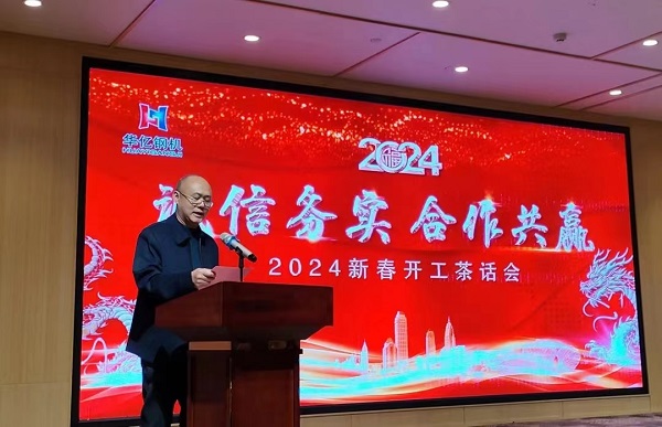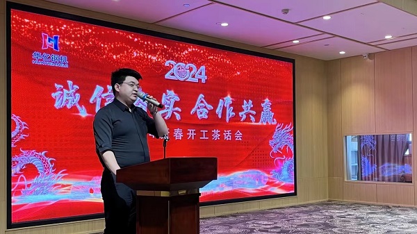 公司分管商務的副總經理、華億重工總經理張權在開工儀式暨新春茶話會上發表致辭,他強調,順風航行啟新程,自強不息寫新歌。新的一年,公司上下要以更為緊迫、更有責任、更加扎實、更加精細的作風,沖刺2024年的年度目標。號召全體員工要全身心投入2024年的新征程之中,保持昂揚斗志,精準發力,辛勤耕耘,以頑強拼搏的姿態和務實的作風,為完成新一年的業績目標而不斷拼搏。