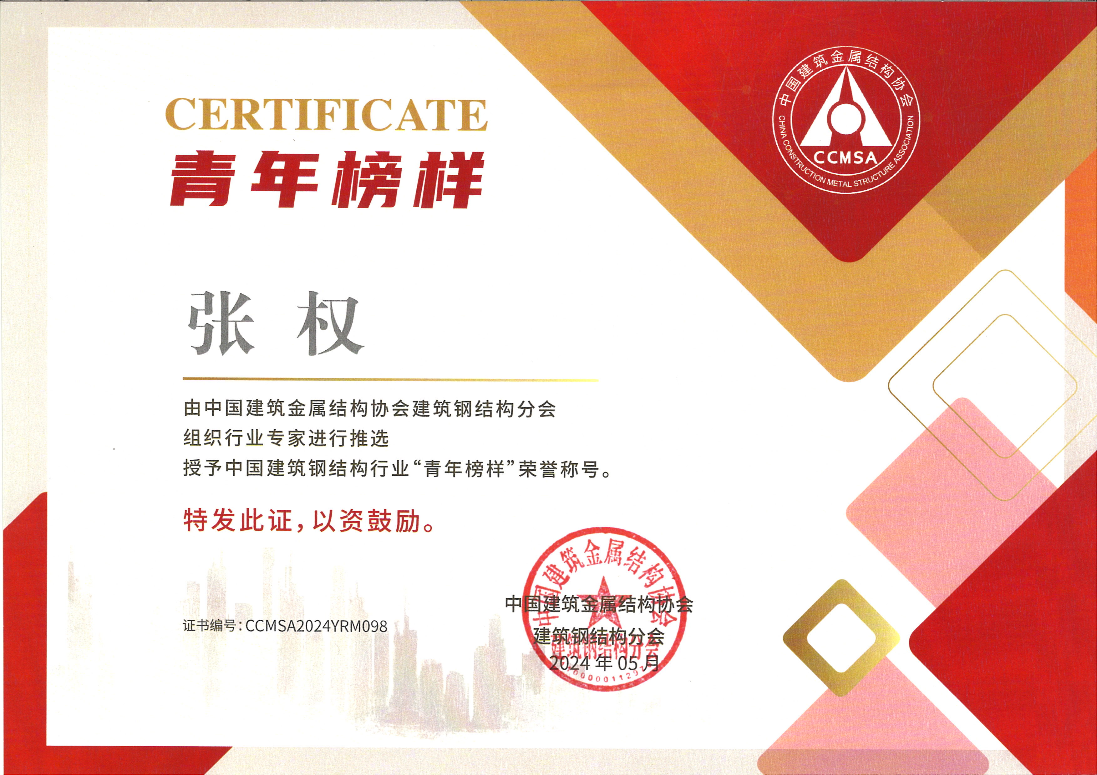 大會表彰了一批在建筑鋼結構行業做出突出貢獻的先進單位和優秀個人。公司獲評“全國建筑鋼結構行業綜合實力統計前50名入圍企業”、“鋼結構橋梁制造企業綜合能力評價特級”,公司副總經理賈紅美榮獲“建筑鋼結構行業巾幗模范”稱號,張權榮獲“2024年建筑鋼結構行業青年榜樣”稱號。