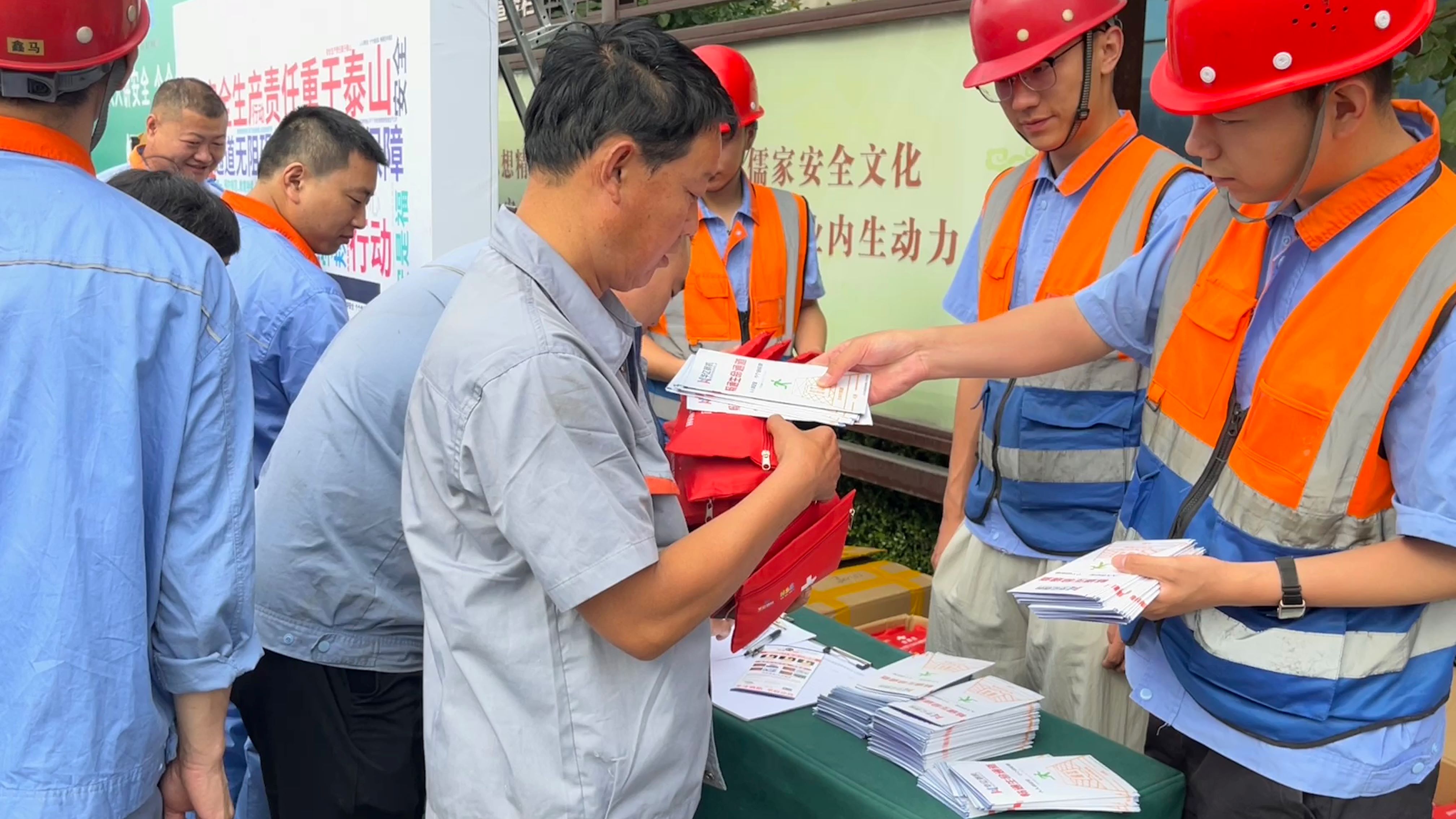 (安全部為職工發放急救包及安全生產月活動宣傳手冊)