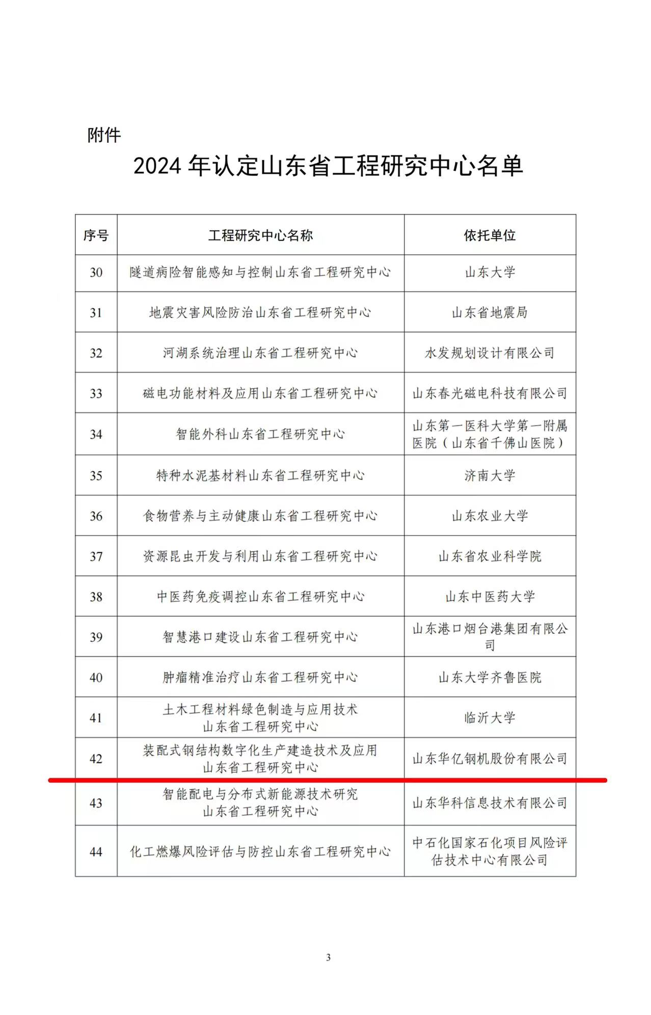 近日,省發(fā)改委發(fā)布了《關(guān)于公布2024年認定山東省工程研究中心名單的通知》,公司申報的“裝配式鋼結(jié)構(gòu)數(shù)字化生產(chǎn)建造技術(shù)及應(yīng)用山東省工程研究中心”成功入圍。
