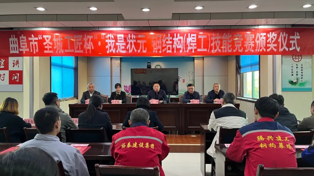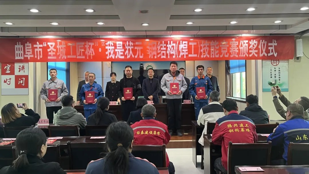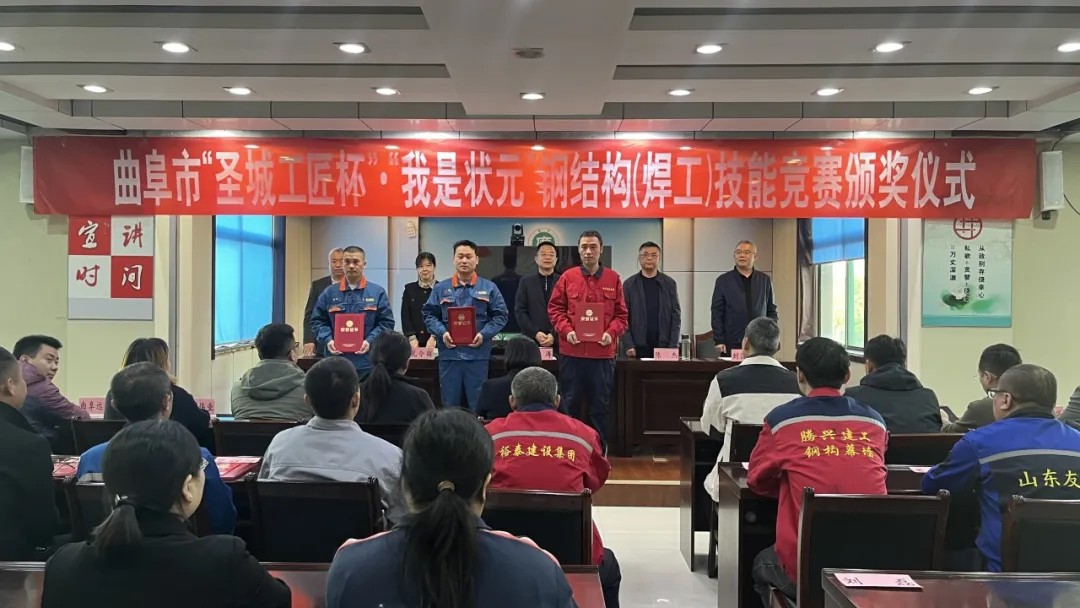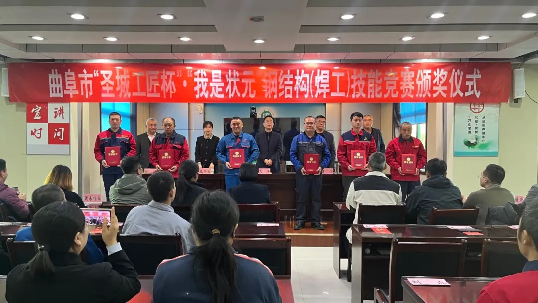 11月8日,由曲阜市住房和城鄉建設局、曲阜市人力資源和社會保障局、曲阜市總工會主辦的曲阜市“圣城工匠杯”·“我是狀元”鋼結構(焊工)技能競賽頒獎儀式在曲阜市住房和城鄉建設局隆重舉行。