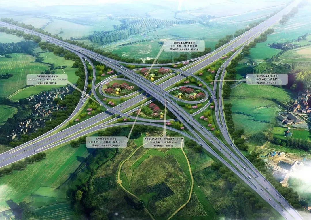 鞍山至臺安高速公路寬邦樞紐互通位于臺安縣西側(cè),采用對角雙環(huán)苜蓿葉形立交方案,為全線控制性工程之一。主線起于K57+030處,止于K57+689.5,主線總長度659.5m,共設(shè)A、B、C、D、E、F、G、H八條匝道,與京沈高速關(guān)聯(lián)長度2010m,主要結(jié)構(gòu)為大中小橋6座(包括互通匝道橋)、涵洞及通道17道、路基填方約134萬方,橋梁工程主要包括樁基232根、承臺26個、墩臺身178個、蓋梁83個,預(yù)制T梁210片、鋼混組合梁12孔、現(xiàn)澆箱梁25孔。