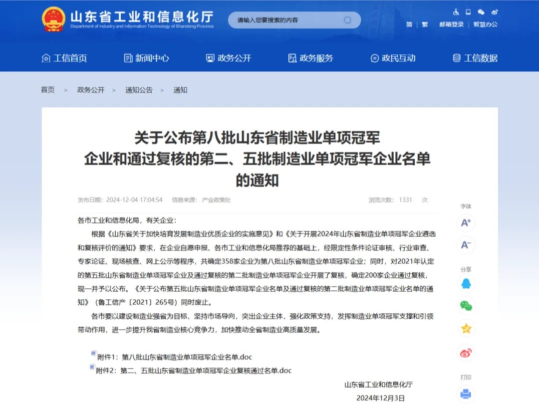 據(jù)了解,山東省制造業(yè)單項(xiàng)冠軍,是指企業(yè)長(zhǎng)期專注于制造業(yè)特定細(xì)分領(lǐng)域,生產(chǎn)技術(shù)或工藝水平全省領(lǐng)先,單項(xiàng)產(chǎn)品(生產(chǎn)性服務(wù))市場(chǎng)占有率位居全省乃至全國(guó)前列的企業(yè),其代表著制造業(yè)發(fā)展的領(lǐng)頭雁和排頭兵,是細(xì)分領(lǐng)域的行業(yè)制高點(diǎn)。