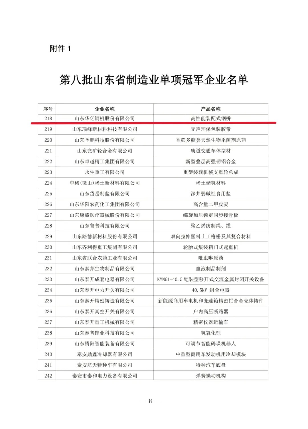 近日,山東省工業(yè)和信息化廳正式公示了“第八批山東省制造業(yè)單項(xiàng)冠軍企業(yè)名單”,公司憑借在高性能裝配式鋼橋領(lǐng)域的卓越貢獻(xiàn)與持續(xù)創(chuàng)新成功入選。