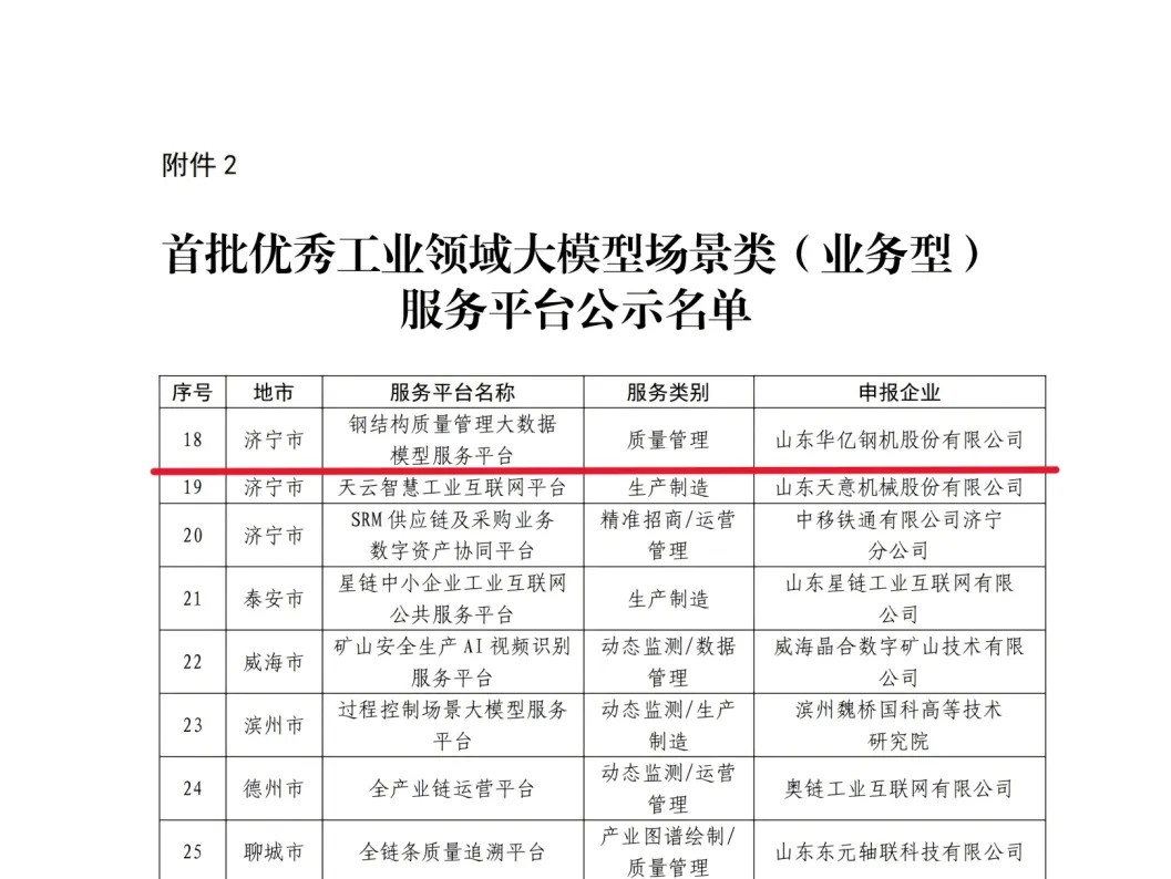 近日,山東省工業(yè)和信息化廳發(fā)布了關(guān)于首批優(yōu)秀工業(yè)領(lǐng)域大模型服務(wù)平臺(tái)名單的公示,公司“鋼結(jié)構(gòu)質(zhì)量管理大數(shù)據(jù)模型服務(wù)平臺(tái)”項(xiàng)目成功入選首批優(yōu)秀工業(yè)領(lǐng)域大模型場(chǎng)景類(lèi)(業(yè)務(wù)型)服務(wù)平臺(tái)名單。