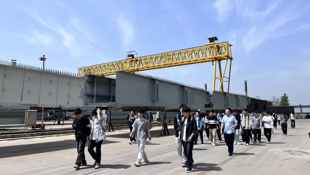 調研首站,研學團深入公司車間生產一線,先后參觀了數控下料車間、自動化焊接車間及裝配式鋼結構加工中心,研學團師生近距離觀察了鋼結構產品的全流程生產工藝。工作人員結合車間實際,為師生們詳細講解了公司在智能制造、綠色生產等方面的技術突破,并分享了公司如何通過技術創新提升產品質量、降低能耗的經驗。