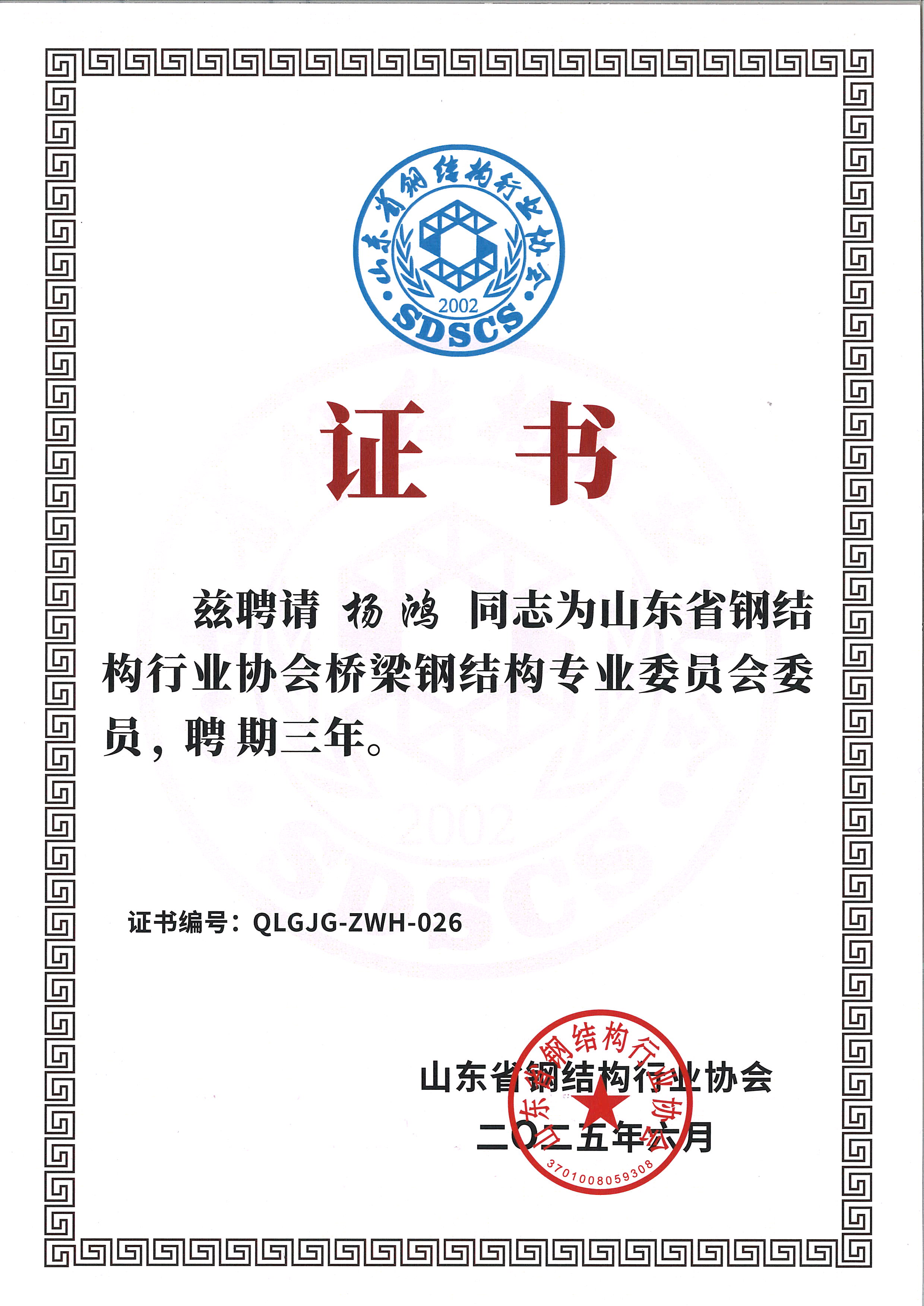 董事長(zhǎng)張猛、副總經(jīng)理?xiàng)铠櫡謩e入選山東省鋼結(jié)構(gòu)行業(yè)協(xié)會(huì)橋梁鋼結(jié)構(gòu)專業(yè)委員會(huì)委員