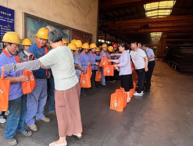 慰問組一行深入公司鋼結構生產車間,將裝有防暑物資的“清涼禮包”遞到職工手中,并詳細了解他們的工作強度、防暑措施落實情況及生活需求,叮囑大家注意勞逸結合,做好防暑降溫。