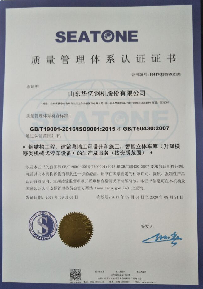 我公司9000三體系證書已頒發(fā)