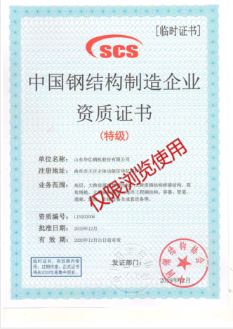 公司具有鋼結(jié)構(gòu)、幕墻設(shè)計甲級資質(zhì),鋼結(jié)構(gòu)專業(yè)承包壹級資質(zhì),幕墻專業(yè)承包壹級資質(zhì),建筑裝飾裝修工程專業(yè)承包貳級資質(zhì);建筑工程總承包叁級資質(zhì);機(jī)電工程施工總承包叁級資質(zhì);古建筑專業(yè)承包叁級資質(zhì);環(huán)保工程專業(yè)承包叁級;山東省裝配式建筑產(chǎn)業(yè)基地。