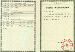 • 公司是建設部批準的國家鋼結構一級施工資質、建筑幕墻一級施工資質、鋼結構工程設計甲級專項資質、建筑幕墻工程設計甲級專項資質企業.